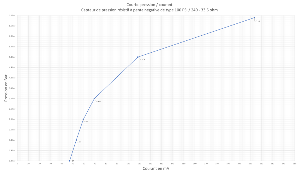 On doit obtenir une courbe de courant proche de celle-ci, par exemple ici pour un capteur 240-33.5 Ohms à pente négative, tel qu’utilisé sur Toyota HDJ80 :