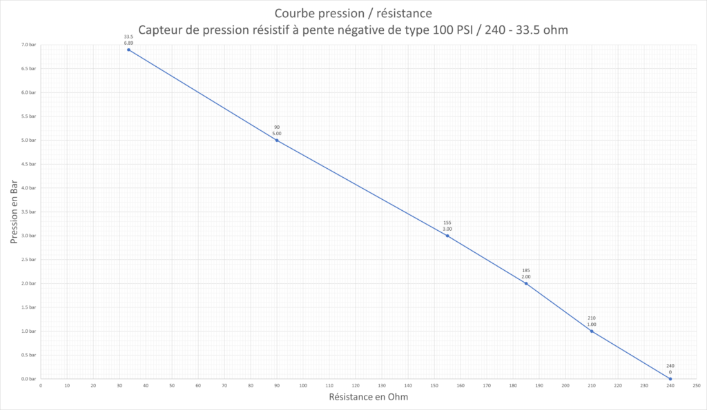 Pente positive (réservoir vide ou pression nulle -> valeur de résistance la plus faible) :