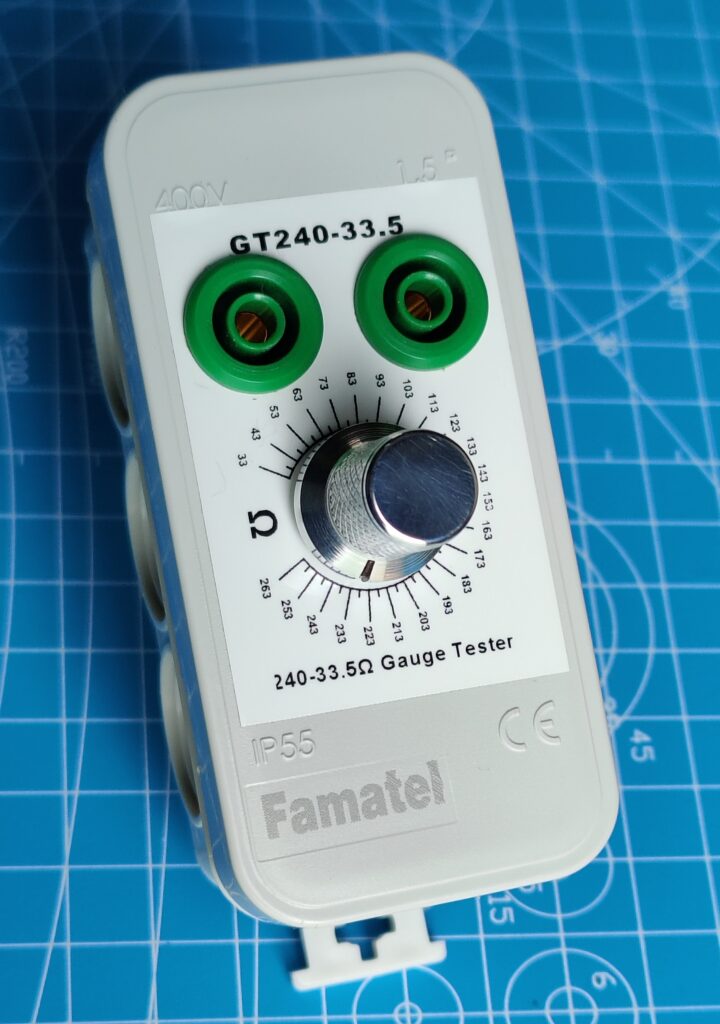 Ici un simulateur fait maison, spécifiquement pour tester les jauges 240-33.5 Ohms :