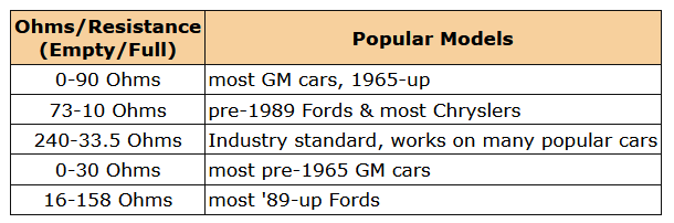 GM 1965-1997 – 0-90 Ohms